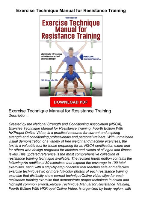 Free PDF PDF Exercise Technique Manual for Resistance Training 2nd Kindle Editon Gutenberg